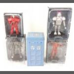 DOCTOR WHO - Special figures by Eaglemoss to include The Fourth Doctor - Giant Robot, The Tenth Doctor - Cyber King and The Beast, The Twelfth Doctor - King Hydroflax, all boxed unopened plus a metal TARDIS tin containing the 30th anniversary 'Trial of a Time Lord in 3 videos
