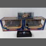 BATMAN FOREVER - Two Batmobile 1:24 scale Die-cast model cars still boxed as new unopened with also THE DARK KNIGHT RISES TUMBLER die-cast collector model - also THE DARK KNIGHT RISES framed twin-coin set as new unopened