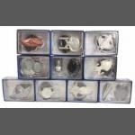 HARRY POTTER - a collection of reproduction props by THE NOBLE COLLECTION in boxed presentation cases to include the Noble collection of coins, Bellatrix's wand, two mirrors of Erised, two Triangular Mirrors, a Dagger, Dumbledore's Army statuette, Hogwarts House Pin set, Mad-Eye Moody Flask,
