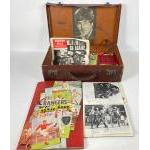 A vintage suitcase containing childhood memories from the 1950/1960s. Includes an interesting little booklet with clippings and signatures purporting to be by Elvis Presley, The Beatles, The Hollies and others. The collection came from a high end collector but we have no provenance. Also includes various pieces of footballing ephemera.