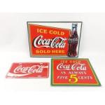 COCA-COLA - a collection of various Coca-Cola items to include a baseball cap, a sealed 7" record of 'First Time' by Robin Beck, 4 small trays (17x12cm), 1 oval tray (15x11cm approx), a Coca-Cola pen in a presentation tin, a small 3 drawer cabinet (25x13x13cm has a few small dents), a pack of playing cards, a money box etc