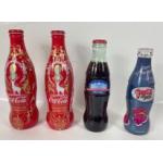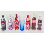 COCA-COLA - various edition Coke bottles to include two for Christmas and 1 Diet Coke bottle and with a blue Coca-Cola glass NOT FOR HUMAN CONSUMPTION