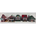 COCA COLA - a Franklin Mint STAINED GLASS VILLAGE to include eight buildings being a 1999 Movie House, a 1999 Ice Cream Parlor, a 1998 Firehouse, a 1997 Gas Station (small crack on one panel on roof), a 1997 Train Station, a 1995 Corner Store, a 1997 Victorian Hotel, a 1999 Antique Store etc