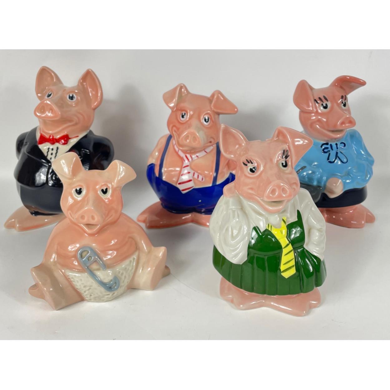 A collection of 5 NAT WEST piggy banks all stamped WADE to the base and all with original stoppers intact, the Baby pig has a chip to the base and Annabell has a firing flaw to the base otherwise good condition