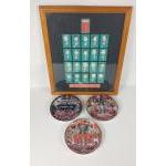 MANCHESTER UNITED - a framed set of collectors' cigarette cards with team members from 1981-2000 plus 3 collector's plates commemorating Barclays Premier League Winners 2006-2007 and 2008-09, Champions from 1908-2011,