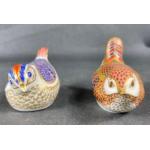 Two ROYAL CROWN DERBY silver button birds each 9cm long