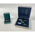 LAND ROVER memorabilia to include a 50th anniversary tie-pin and a boxed set of 5 Land Rover tie-pins from 1948-1989