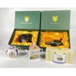 RINGTONS - A queen's golden jubilee TEAPOT, a 1960s collectors' teapot, a RINGTONs centenary teapot, a boxed, unused RINGTONS Austin K8 Van (AK011), a boxed Ford Escort van in Ringtons colours 20cm long, and a boxed Ringtons delivery van