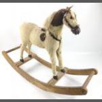 Quite lovely well proportioned late Victorian real hide Rocking Horse. A real little cutie but is in need of some TLC to the seams and horse hair. Retains the original bridle but could do with a replacement saddle. Stands 2ft high to the lovely little ears. Can you give this little pony a new forever home?