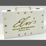 An ELVIS LAS VEGAS Poker Set, in a padded case, 4 strips of chips and 2 packs of Elvis cards are unopened