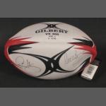 GALASHIELS RUGBY INTEREST! GILBERT V300 Rugby ball. Galashiels interest, signed by Peter Brown and one other. Requires inflating. Size 5.