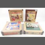 Two wooden cased PARKER MONOPOLY games a similar game of CLUEDO and a game of RUMMIKUB , all the games are still sealed and unused