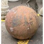A SUBSTANTIAL AND EXTREMELY HEAVY red sandstone ORB for the garden - diameter 30cm diameter approx - it has a flat dimple on the bottom to save it ‘rolling about'! Starting bid £35