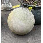 A SUBSTANTIAL AND EXTREMELY HEAVY white sandstone ORB for the garden - diameter 30cm diameter approx - it has a flat dimple on the bottom to save it ‘rolling about'!