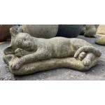 A garden resin LIFELIKE stone crouching pussy - dimension 1ft length approx