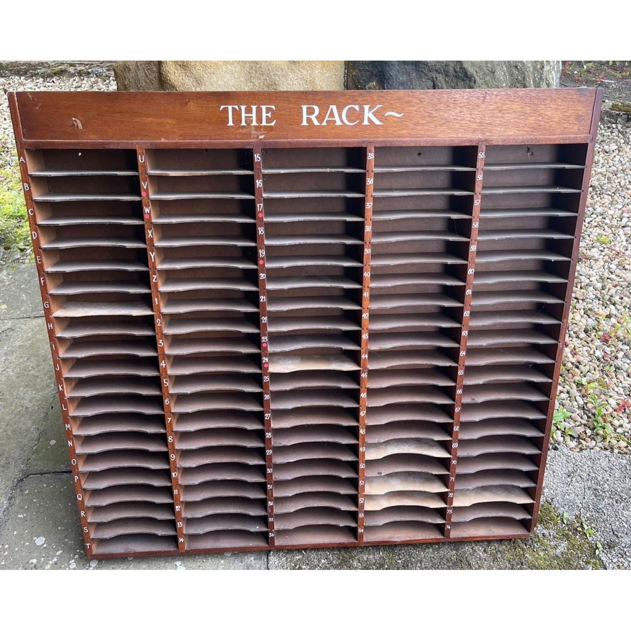 EDWARDIAN CHURCH ‘THE RACK' for parish letters - 74 spaces - dimensions 3ft x 3ft approx
