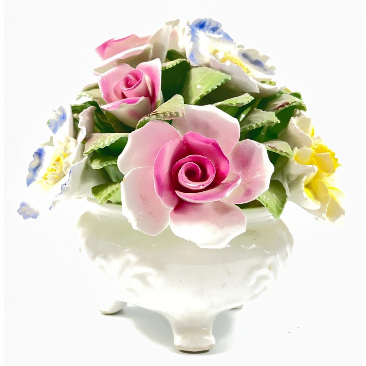 A large vintage ROYAL STRATFORD fine china bowl of flowers ornament - dimensions 13cm height x 13cm diameter appro