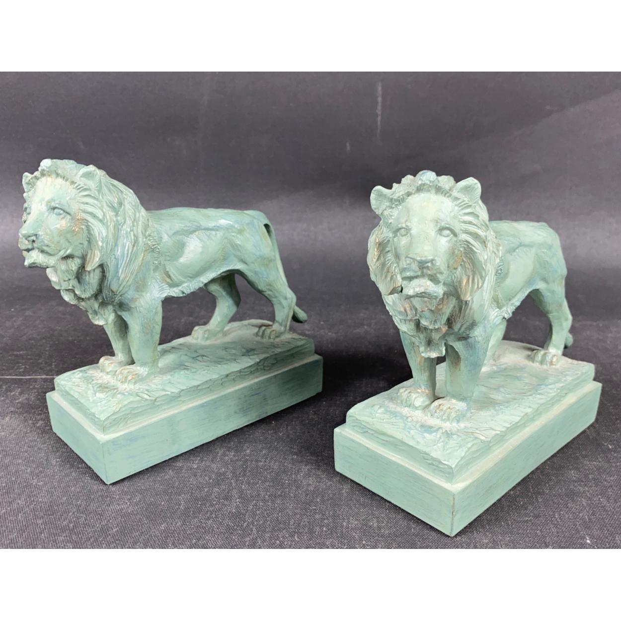A pair of 'MUSEUM LIONS' made in cold cast resin replicated from those guarding the entrance to the Art Institute of Chicago Museum 13x15cm