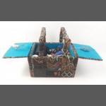 An embroidered sewing box with contents of threads, needles etc, 28x20x14cm approx
