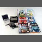 A GAME BOY ADVANCE hand-held console in travel case with charger with 6 games including Driver 2 Advance, V-Rally 3, 007 Nightfire, Super Mario World, International Superstar Soccer and GT Championship