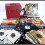 A selection of LPs and singles to include the CARPENTERS, SEEKERS, etc in a portable case