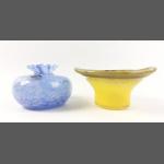 Two small pretty art glass bowls - the blue from Guernsey (10cm), the other from Vasart (14cm)