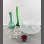 A mixed lot of glassware to include a large MAXWELL WILLIAMS bowl (37cm diameter), a scalloped edge flower vase and three others