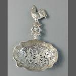 A lovely white metal European strainer with a beautiful punched design 14cm high, weight 71g approx