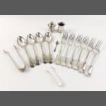 A quantity of EP to include 6 x 20cm forks, 4 x 19cm spoons, 2 pairs of nips, and WALKER & HALL condiment spoon and 2 condiment pots