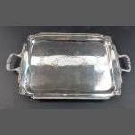 A superb heavy gauge EP tray 46x34cm approx. One of the handles is rather loose