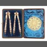 A beautiful pair of white metal nut crackers presented in a box lined with velvet and satin. No maker's mark but at some time someone has given great attention to detail to produce these lovely items.