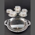 Six each of ARCOPAL teacups and saucers with a small tray.
