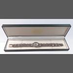 A ladies quartz cocktail watch with Japanese movement in marcasite bracelet with silver hallmarked clasp.