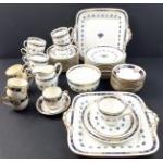 A part COURT China tea service comprising 11 cups, 12 side plates, 12 saucers, 2 sandwich plates and a sugar bowl and cream jug