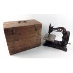 An antique NEWTON WILSON & CO manual sewing machine serial no 94815, Princess of Wales embossed on front, 28cm across. Appears to be in working condition, presented within an old wooden box