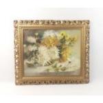 An oil still life of chrysanthemums, signed K. BRICE, frame size 56cm x 47cm