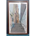 SARAH KEER-KEER. Fleshmarket steps, Edinburgh, 2007. A wonderful original collage made from various pieces of paper depicting this great Edinburgh scene. 68 x 41cm approx. A unique and wonderful piece.