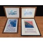Two prints from originals by HARRY MCGREGOR of The Old Course, St Andrews, and a Dundee street scene 32x24cm plus 2 framed railway advertising prints