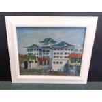 An original oil on board by ROBERT PELL of a Japanese Temple, frame size 63x52cm approx