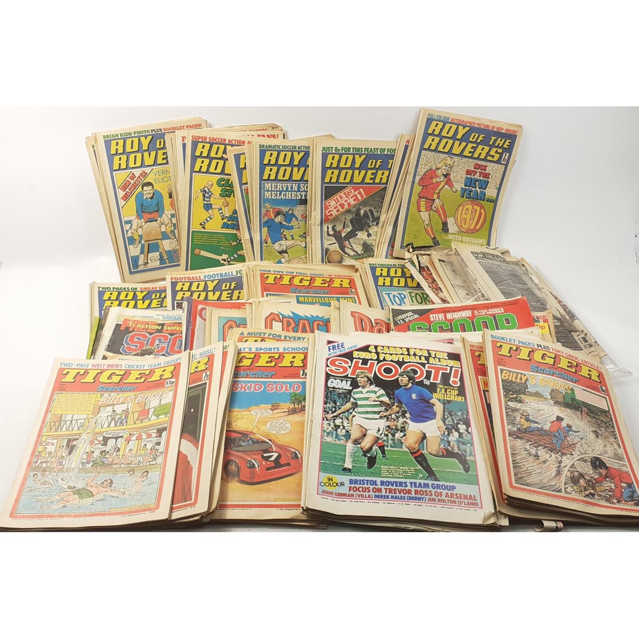 A decent collection of 1970s comics to include SHOOT, TIGER, and many ROY OF THE ROVERS