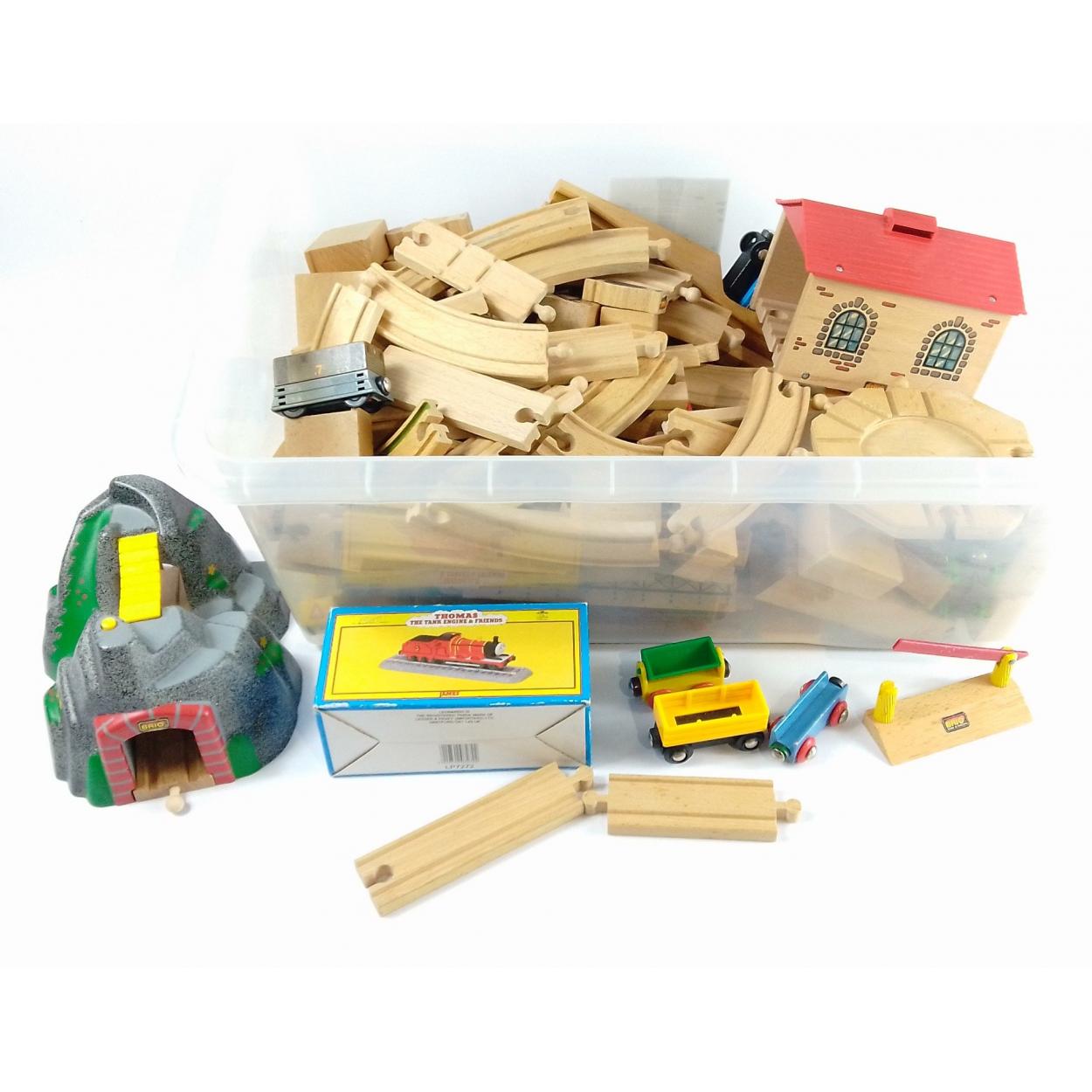 A super child's BRIO inter-locking train set with much track, rolling stock etc in good condition, includes a nice Thomas the Tank Engine static model