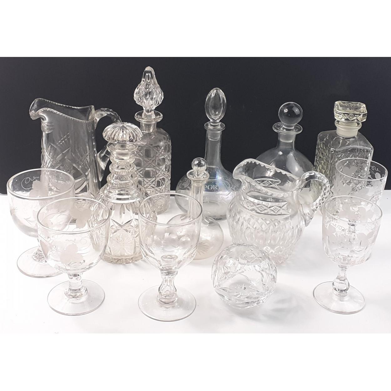 A mixed box to include lots of lovely decorative and useful cut glass pieces to include vinaigrettes, decanters, decorative pin dishes, hors d'oeuvres dishes, and a LLADRO dove (as found)