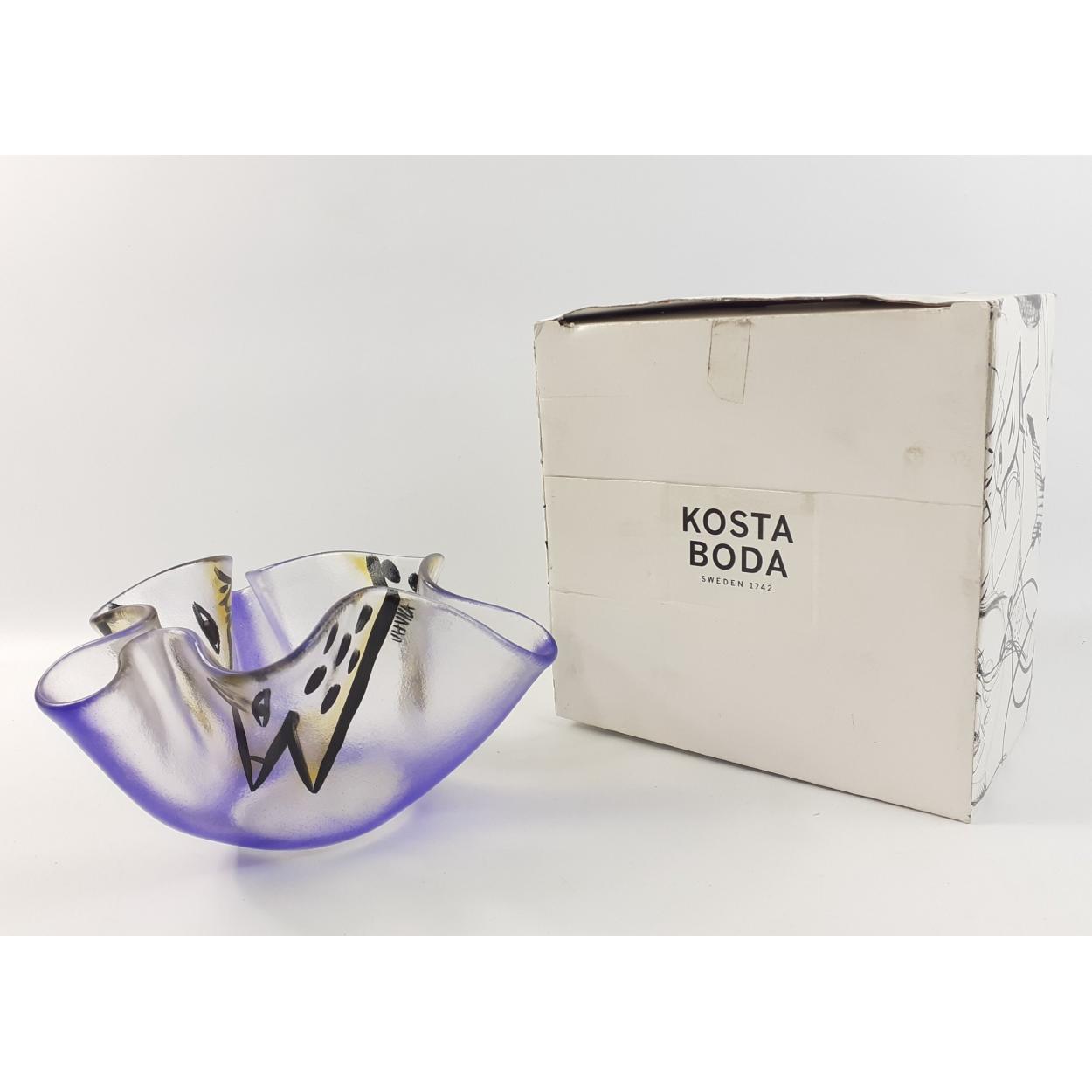 A KOSTA BODA handkerchief style vase, called 'happy going blue' in box with paperwork. In beautiful condition.