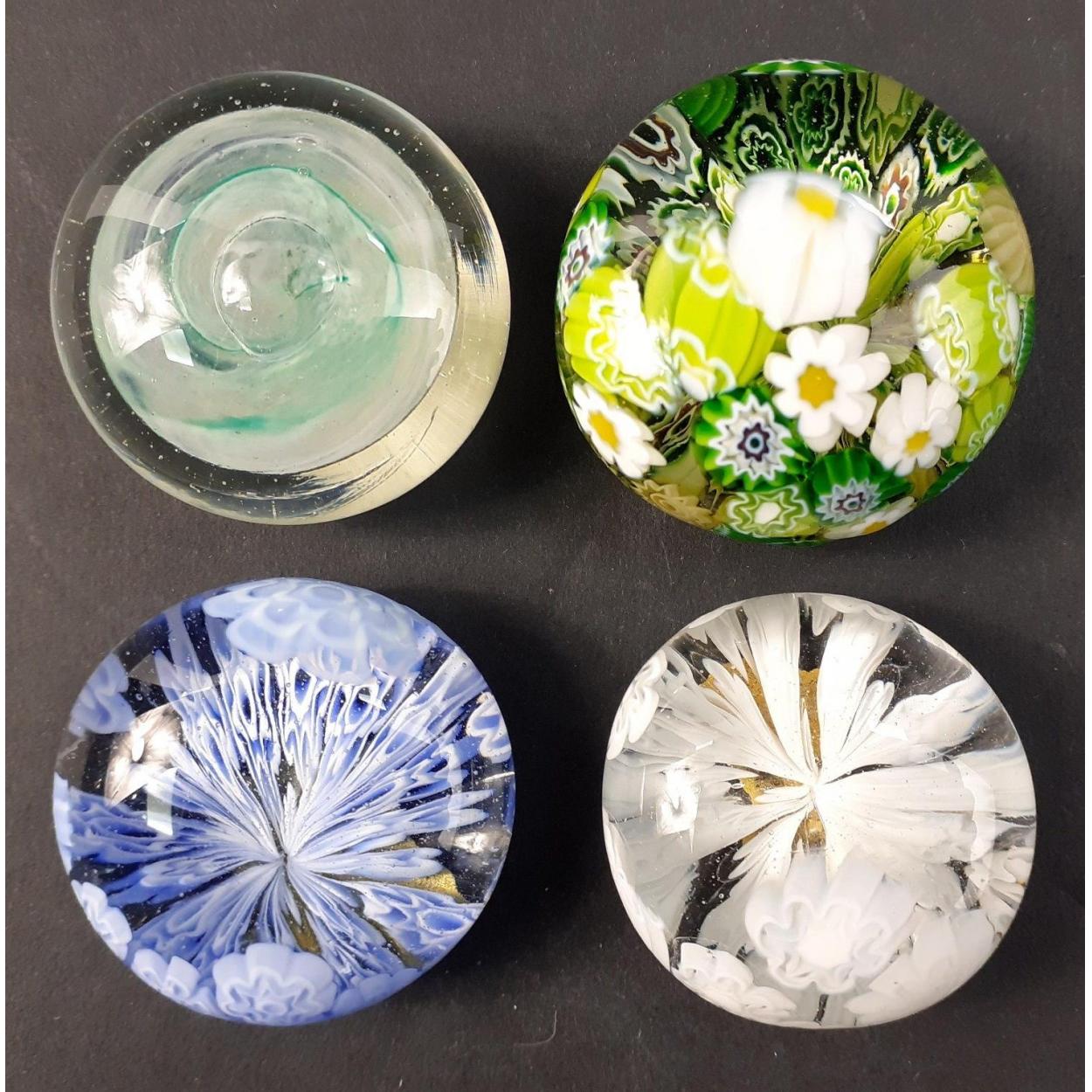Four very small paperweights, one with Tweedsmuir sticker, largest 4cm across