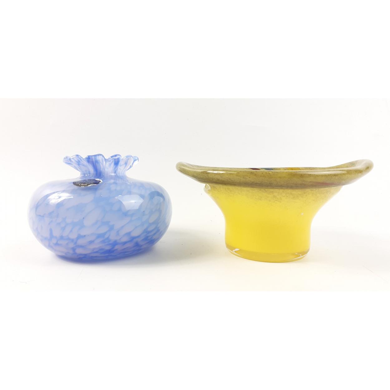 Two small pretty art glass bowls - the blue from Guernsey (10cm), the other from Vasart (14cm)