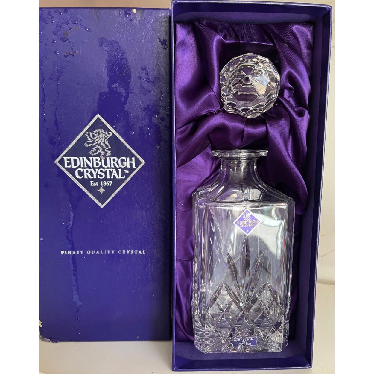 An EDINBURGH CRYSTAL decanter still within its original presentation box - an unused wedding gift