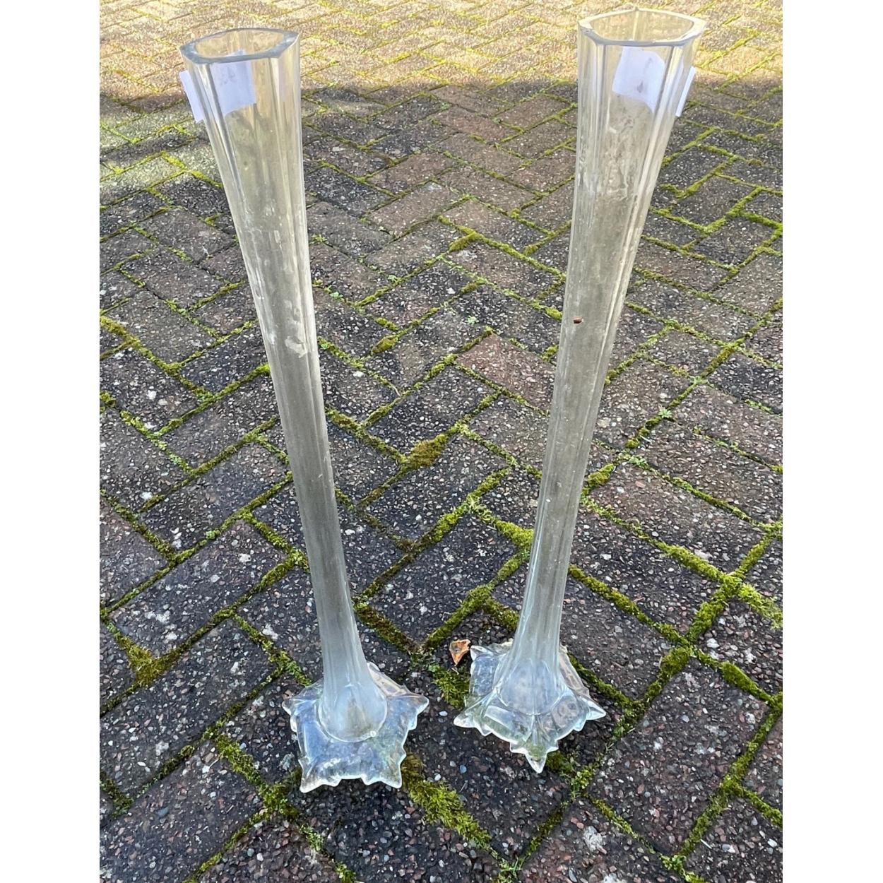 A pair of UNUSUAL glass tall showcase stem vases - approx 2ft tall