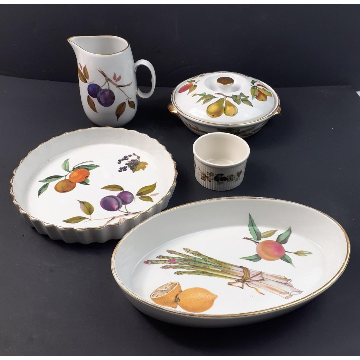 A lot to include ROYAL WORCESTER Evesham oven-to-tableware including 2 flan dishes, one oval, a small casserole dish, a cream jug and a similar Larchmont patterned ramekin
