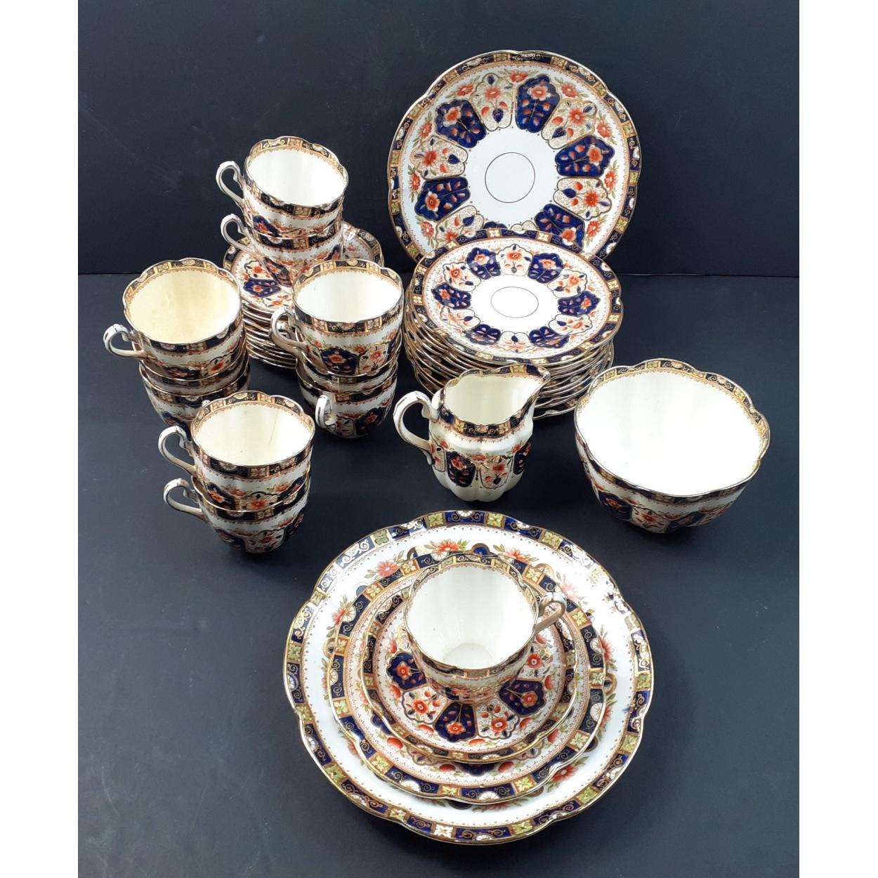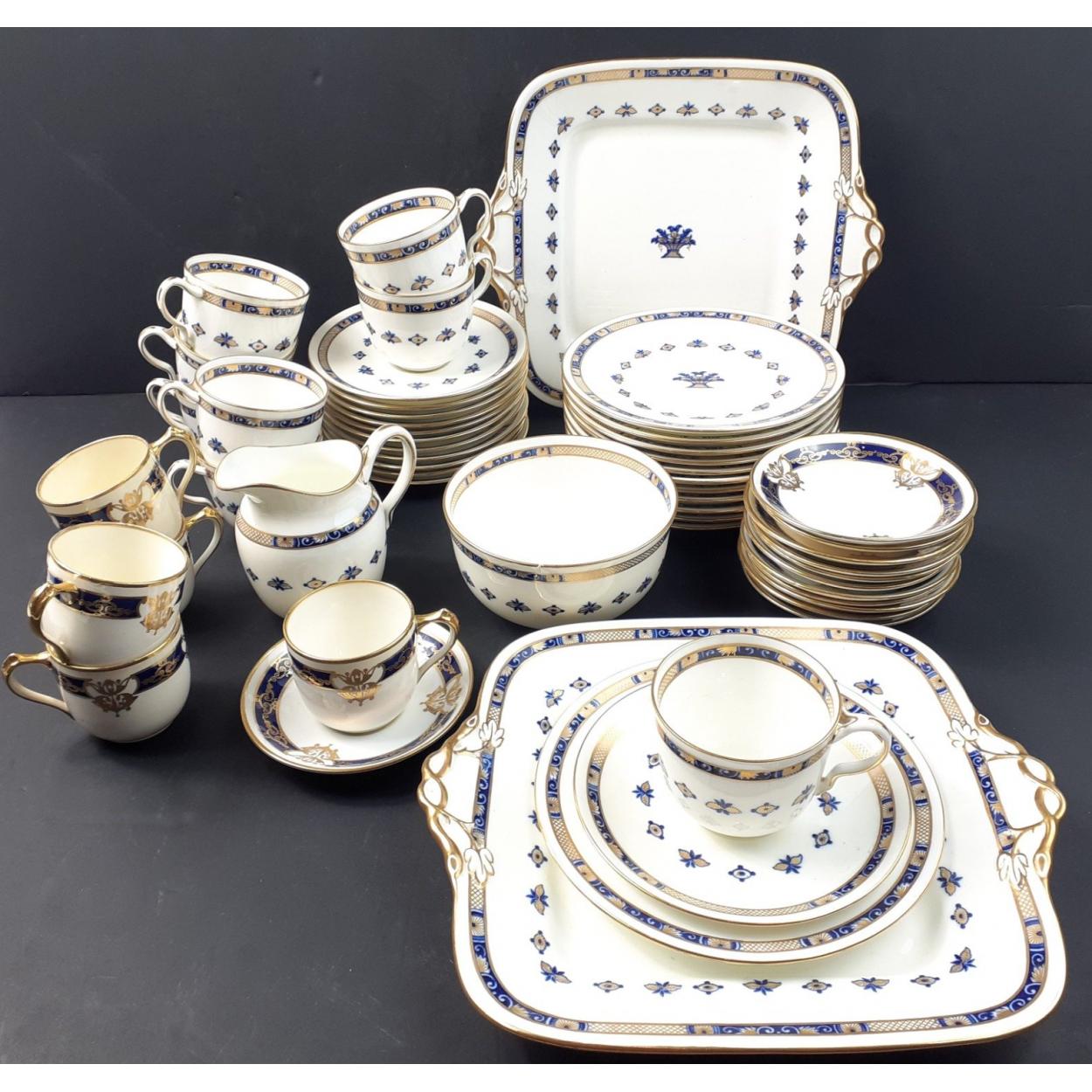 A part COURT China tea service comprising 11 cups, 12 side plates, 12 saucers, 2 sandwich plates and a sugar bowl and cream jug