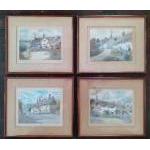 Four original VINTAGE chocolate box country cottage watercolours by J THOMPSON, frame size 39x34cm approx